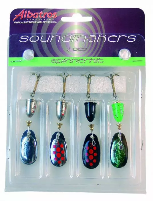 De Albatros Soundmaker Spinkit is een optimale spinnerset. Dit spinnerset heeft alles wat je nodig hebt. De spinners hebben verschillende opvallende kleuren en beschikken over scherpe haken. Deze spinners zijn van erg goede kwaltiteit en vangkracht. Alle spinners van de Albatros Soundmaker Spinkit zijn uitgevoerd met een gewicht van 9 gram en een blad 3 spinner.