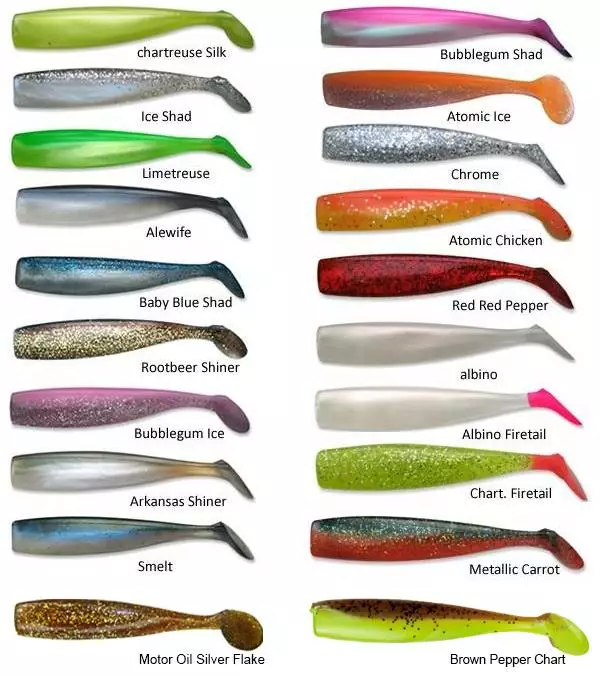 Verkrijgbaar in de kleuren: (Tail Colors) β Chartreuse Flake FT, (Tail Colors) β Fire Tiger FT, Bubblegum Shad, Bumblebee, Chartreuse Silk, Chartreuse Silk Ice, Limetreuse, Mahi Mahi, Black Ice, Atomic Chicken, Bubblegum Ice, Chartreuse Ice, Arkansas Shiner, Baby Blue Shad.