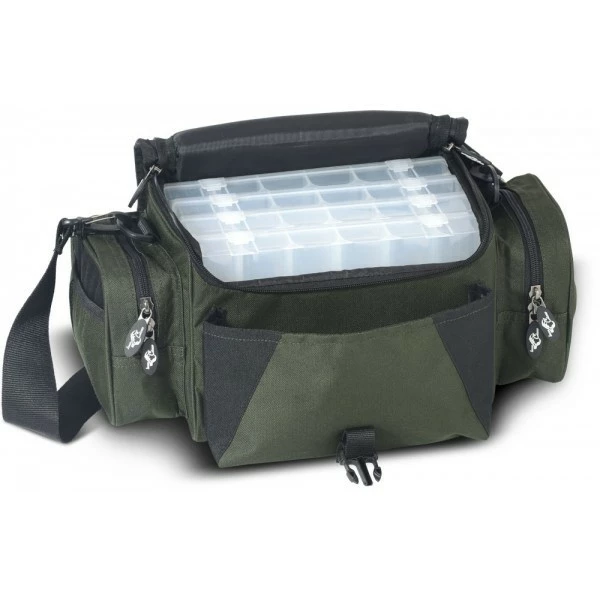De Iron Claw Multi Bag is een zeer comfortabele tas voor aas en accessoires. De tas wordt geleverd inclusief 4 tackleboxen (27 × 17,5 × 4 cm). Aan de zijkanten zitten twee ruime, afsluitbare vakken voor klein materiaal en ook aan de voorkant zit een extra vak. De tas heeft een sterk gevoerde schouderband, zodat hij ook op langere afstanden zeer comfortabel gedragen kan worden. Bovendien is de bodem versterkt met PVC.