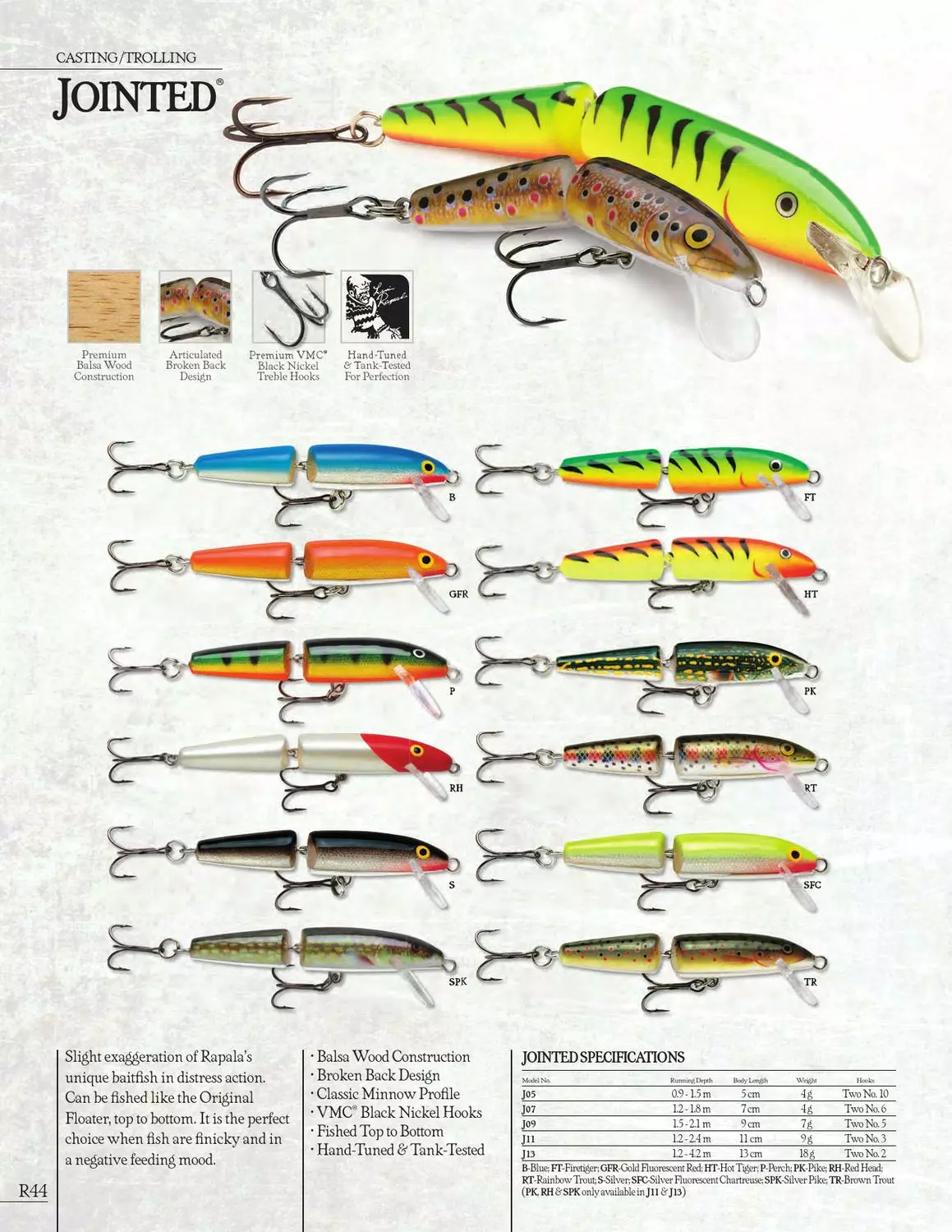 | J-13 | B Blue, CH Chrome, GFR Gold Fl Red, HT Hot Tiger, OSGD Orange Gold Shad, P Perch, RH Red Head, RT Rainbow Trout, S Silver, SFC Silver Fl Chart., SPK Silver Pike |