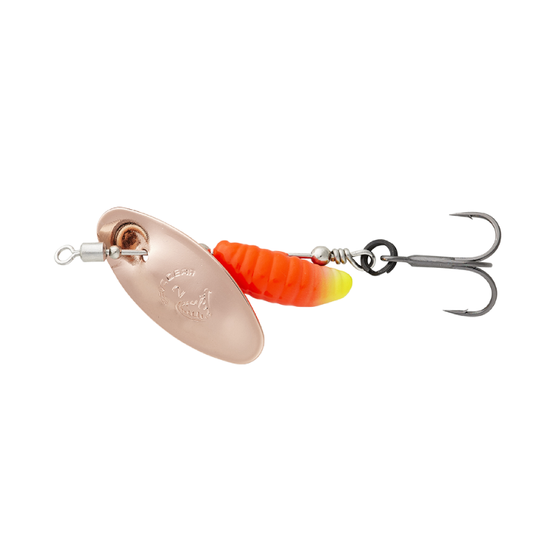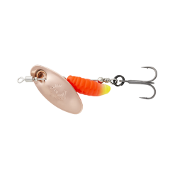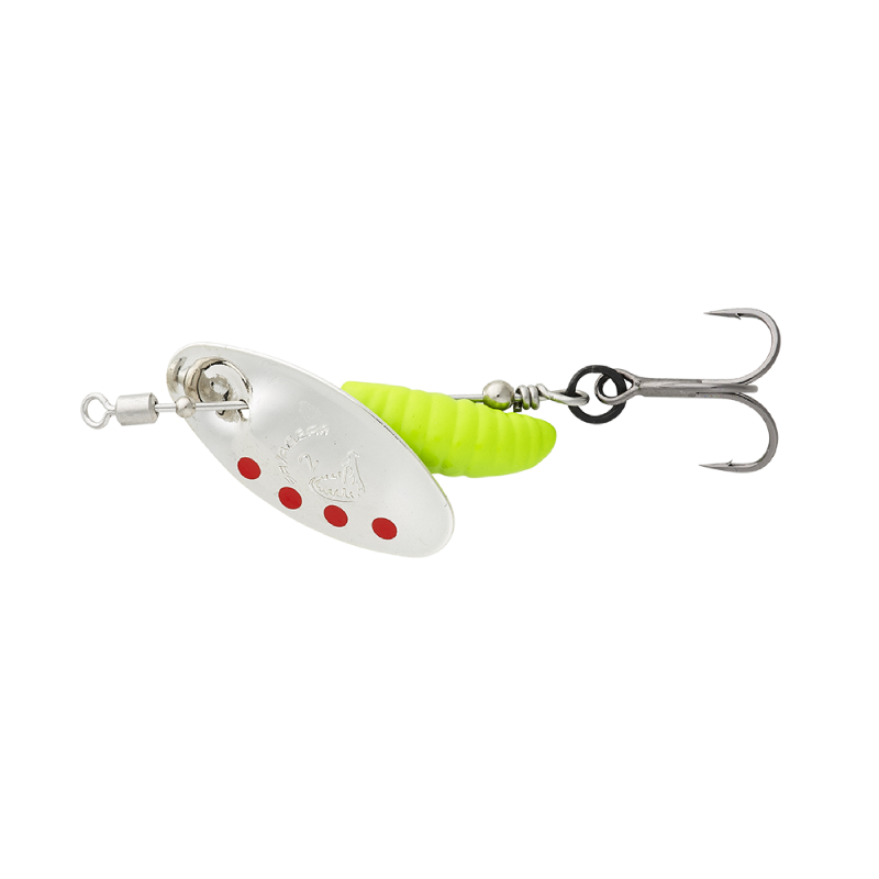 Het madenvormige lichaam in combinatie met de unieke actie betekent dat deze spinner zeker roofdieren zal verleiden om aan te vallen. De roterende, flitsende vleugel, die de aandacht van vissen trekt, combineert met een subtiel en aantrekkelijk ogend lichaam. De ingebouwde wartel helpt het draaien van de lijn te voorkomen en het aantal succesvolle haken wordt vergroot door de aanwezigheid van zeer scherpe dreggen en even scherpe enkele haken.
