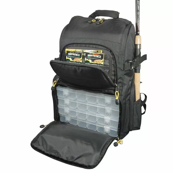 Goede kwaliteits rugzak van Spro met grote capaciteit en zijvakken. De rugzak heeft een 600D PU Coating en is enorm handig ingedeeld. Aan beide zijkanten van de rugzak zit een riem en steun zodat je ook je hengel er aan kunt hangen. De rugzak heeft naast de vakken die te zien zijn ook nog bovenop een groot vak (bijna de helft van de rugzak).